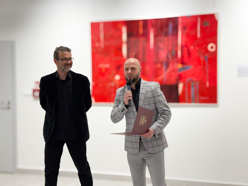 Wystawa pt. „ABSTRAKT” to kolekcja prac powstałych na przestrzeni ostatnich lat, stanowiących zbiór zapisanych w materii malarskiej chwil, powrotów i wewnętrznych impulsów twórczych. To spotkanie z malarstwem, które nie tworzy jednej zamkniętej narracji, lecz układa się w wielowarstwowy zapis czasu: kolejnych etapów pracy, doświadczeń koloru, faktury i gestu. Prezentowane obrazy budują przestrzeń abstrakcji rozumianej jako forma koncentracji i pamięci. Każde płótno jest śladem momentu – napięcia między intuicją a konstrukcją, między spontanicznym działaniem a świadomym porządkowaniem formy. Zestawione razem prace tworzą opowieść o malarstwie jako procesie trwania, w którym obrazy stają się nośnikami przeżyć, nastrojów i wewnętrznych rytmów.